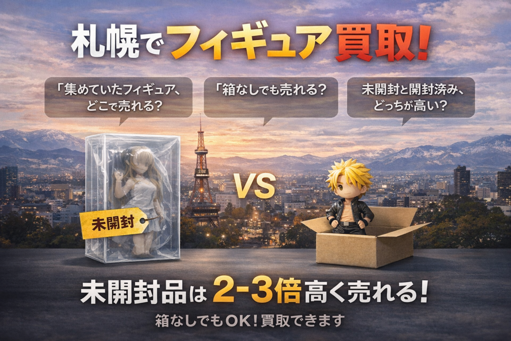 この記事では、札幌でフィギュアを買取する際の未開封vs開封済み・箱の有無・日焼けの影響・付属品の重要性を詳しく解説します。